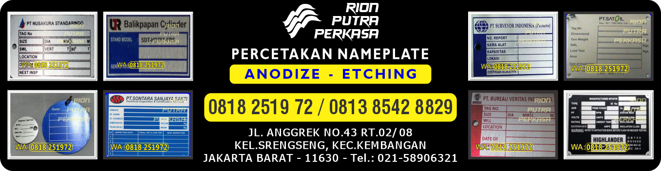 Spesialis dalam Pembuatan Nameplate Aluminium, Nameplate Stainless Steel, Nameplate Kuningan (Brass Plate)